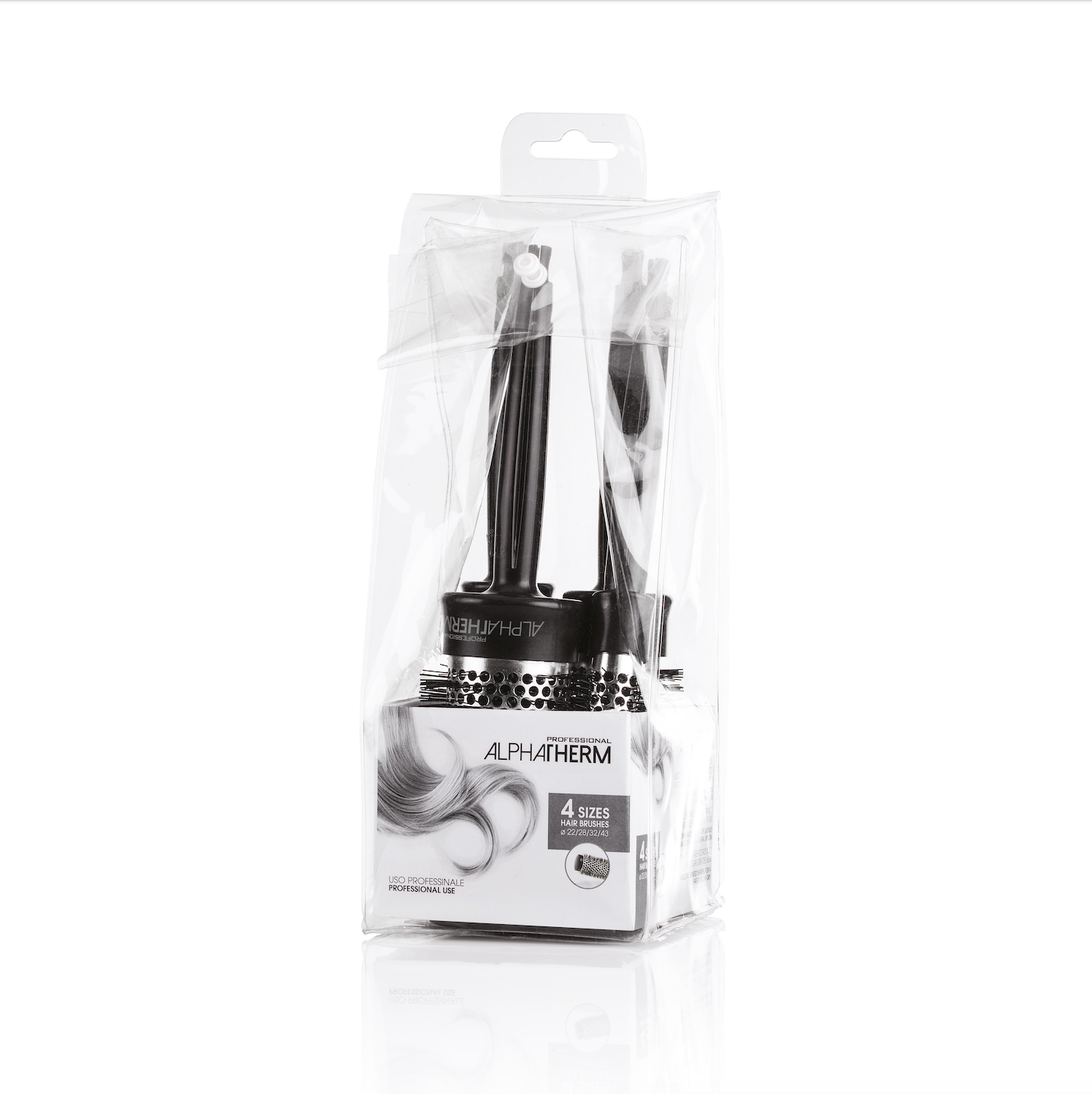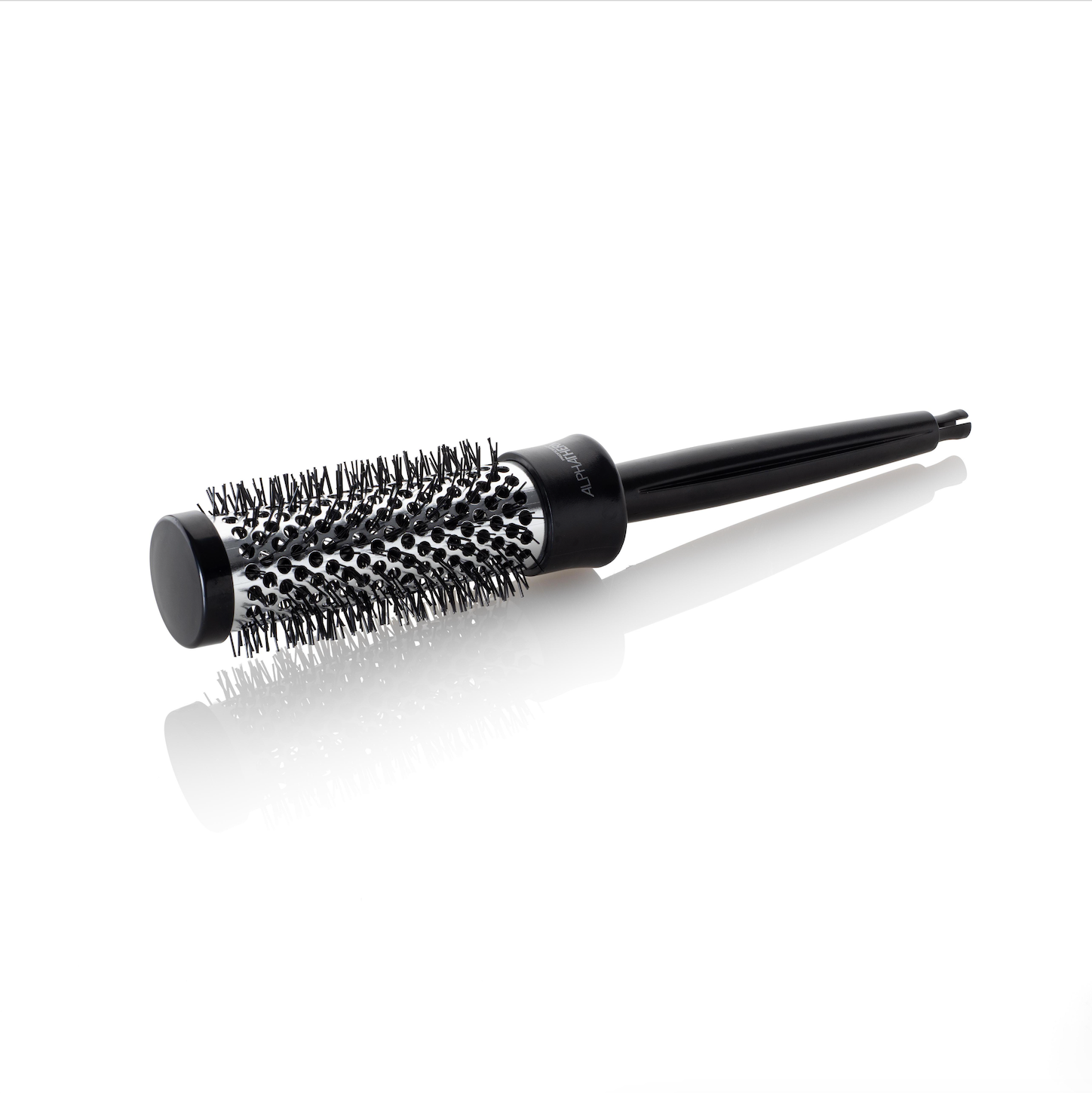 Alpha Therm brushes have a reinforced barrel and cylinder with fastening screws that ensure extreme durability even for intensive salon use. The nylon bristles are resistant to high temperatures, detangling and styling locks without causing static. The hollow, aerated barrel makes the brush lightweight and easy to handle and reduces drying time by 60%.
