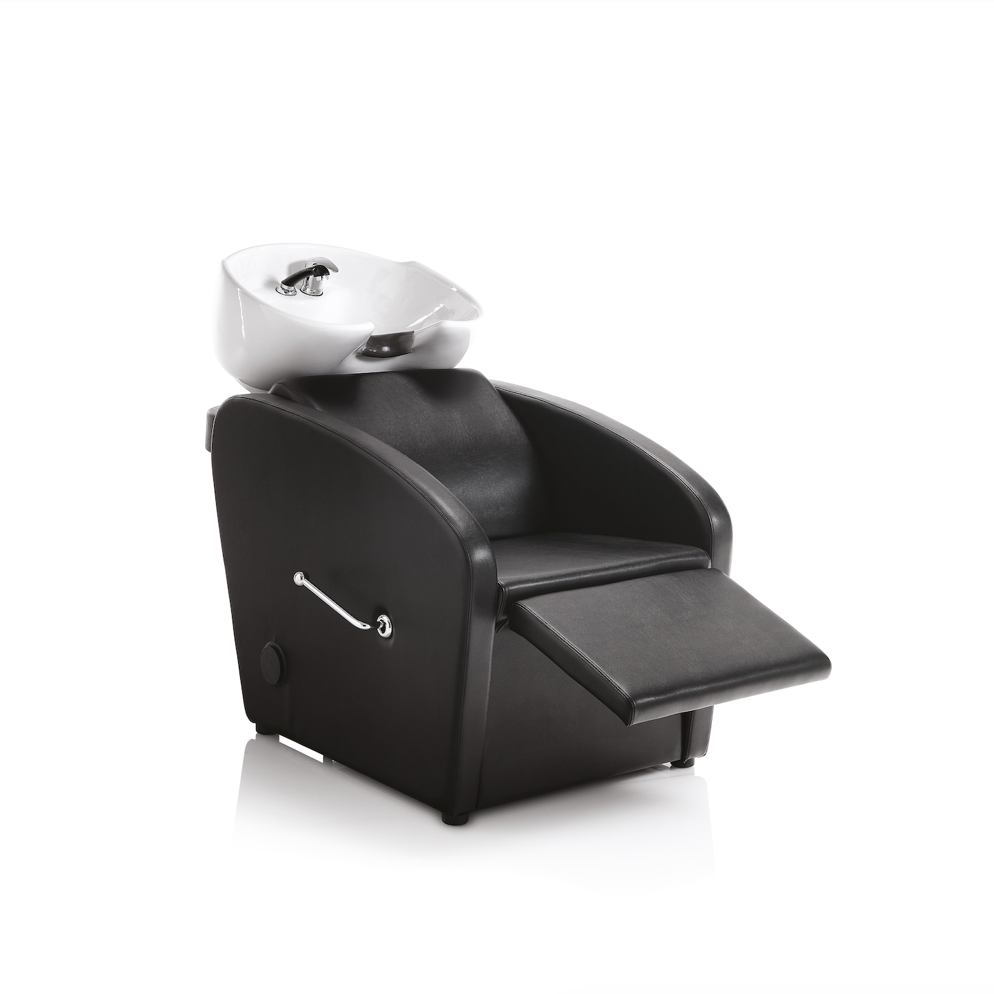 Grazie all’alzata poggiapiedi, il cliente può distendersi in una posizione rilassata, trasformando il lavaggio in un momento di puro benessere. Perfetta per saloni che desiderano unire stile, comfort e funzionalità in un’unica soluzione.