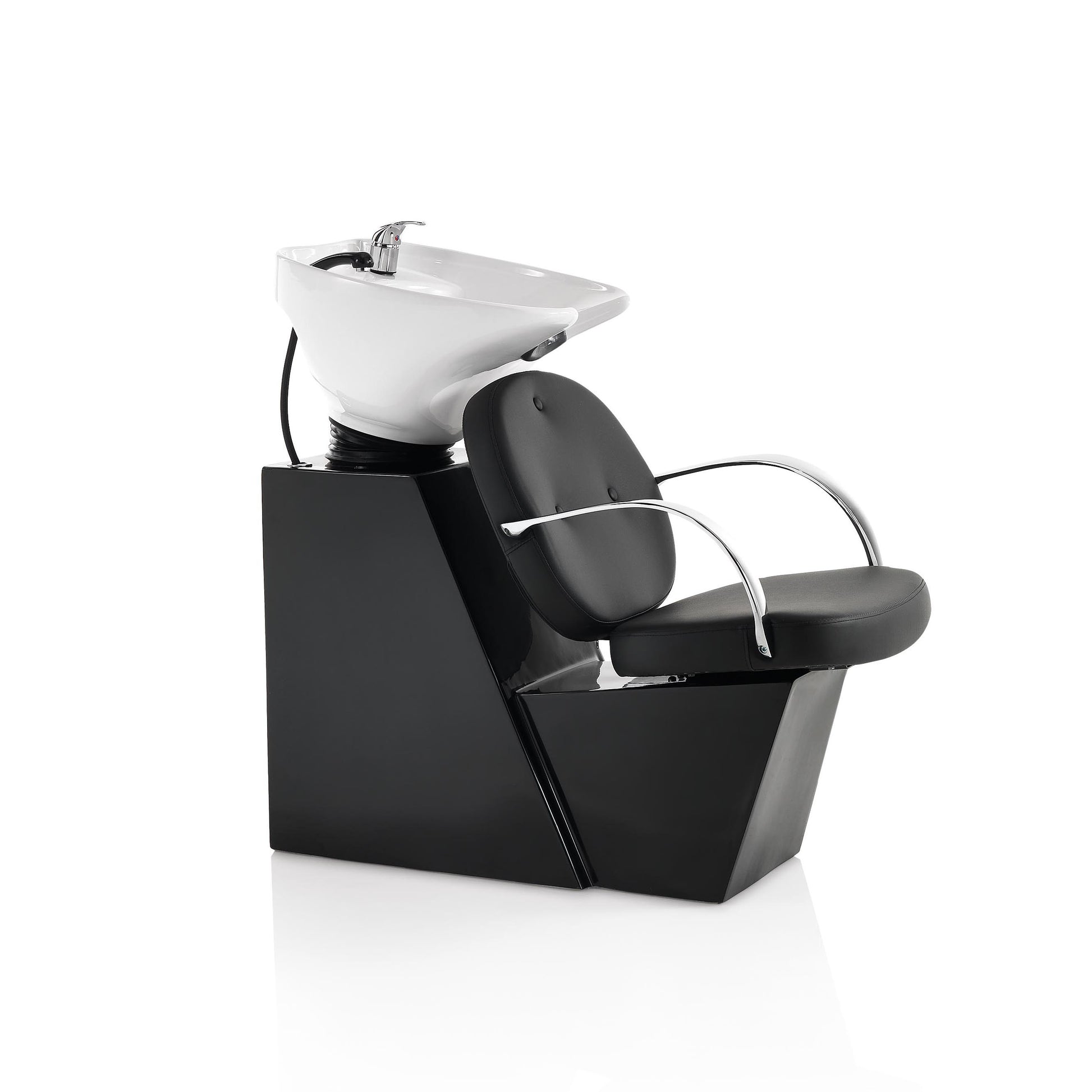 La vasca basculante consente di regolare l’inclinazione per assicurare un’esperienza di lavaggio comoda e rilassante per il cliente. La doccetta con tubo flessibile permette un’erogazione precisa dell’acqua, ottimizzando il lavoro del professionista.