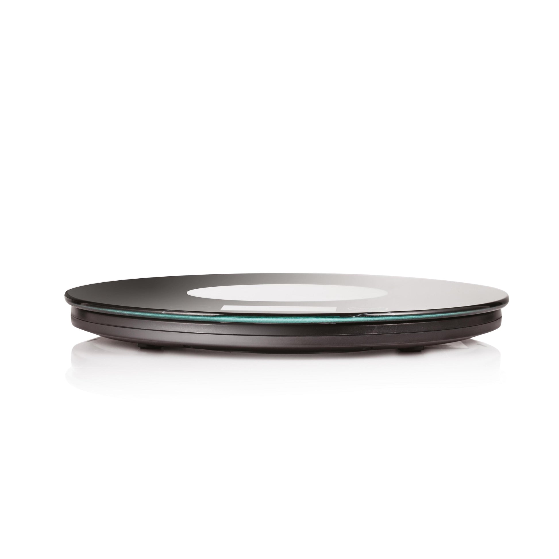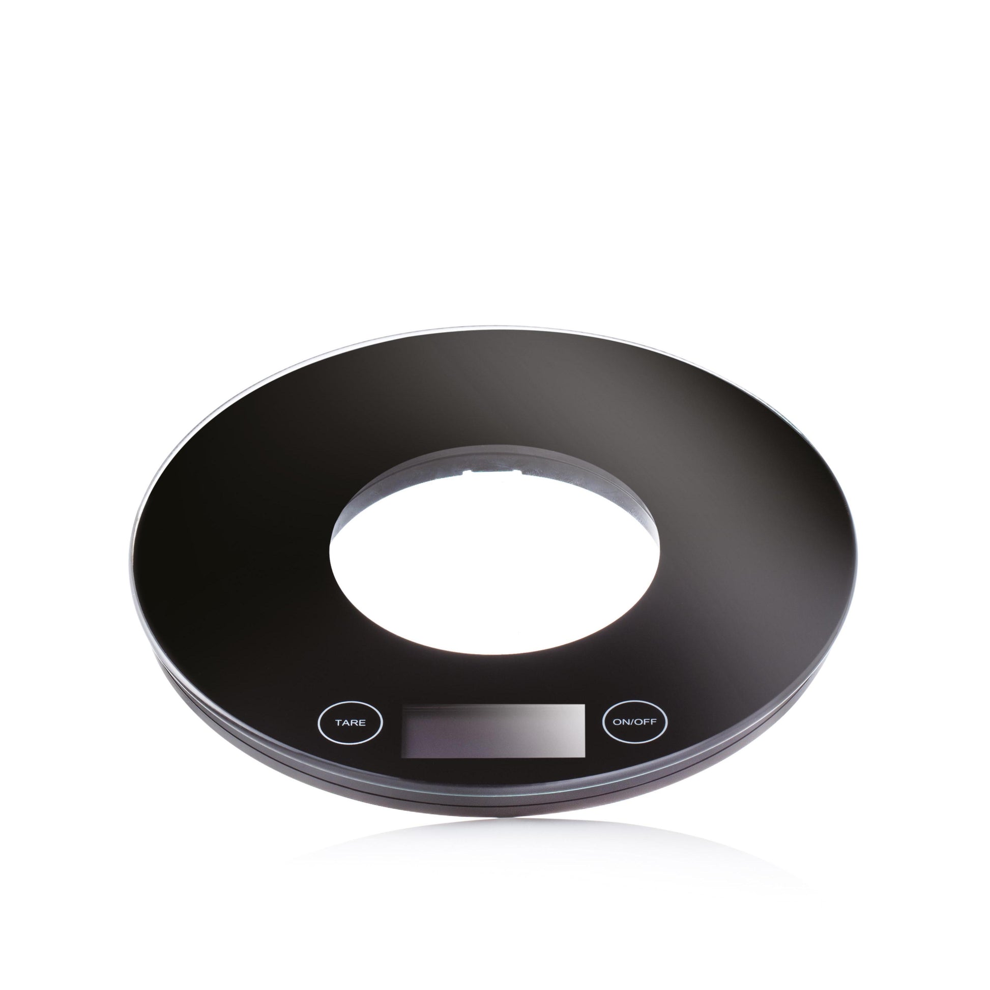 Expo bilancia digitale rotonda compatta. Con display digitale e portata max di 5kg. Batterie incluse.