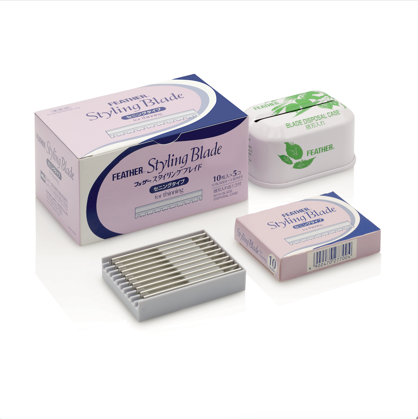 Lame Feather Thinning dentate per sfilzino con custodia di smaltimento in metallo.