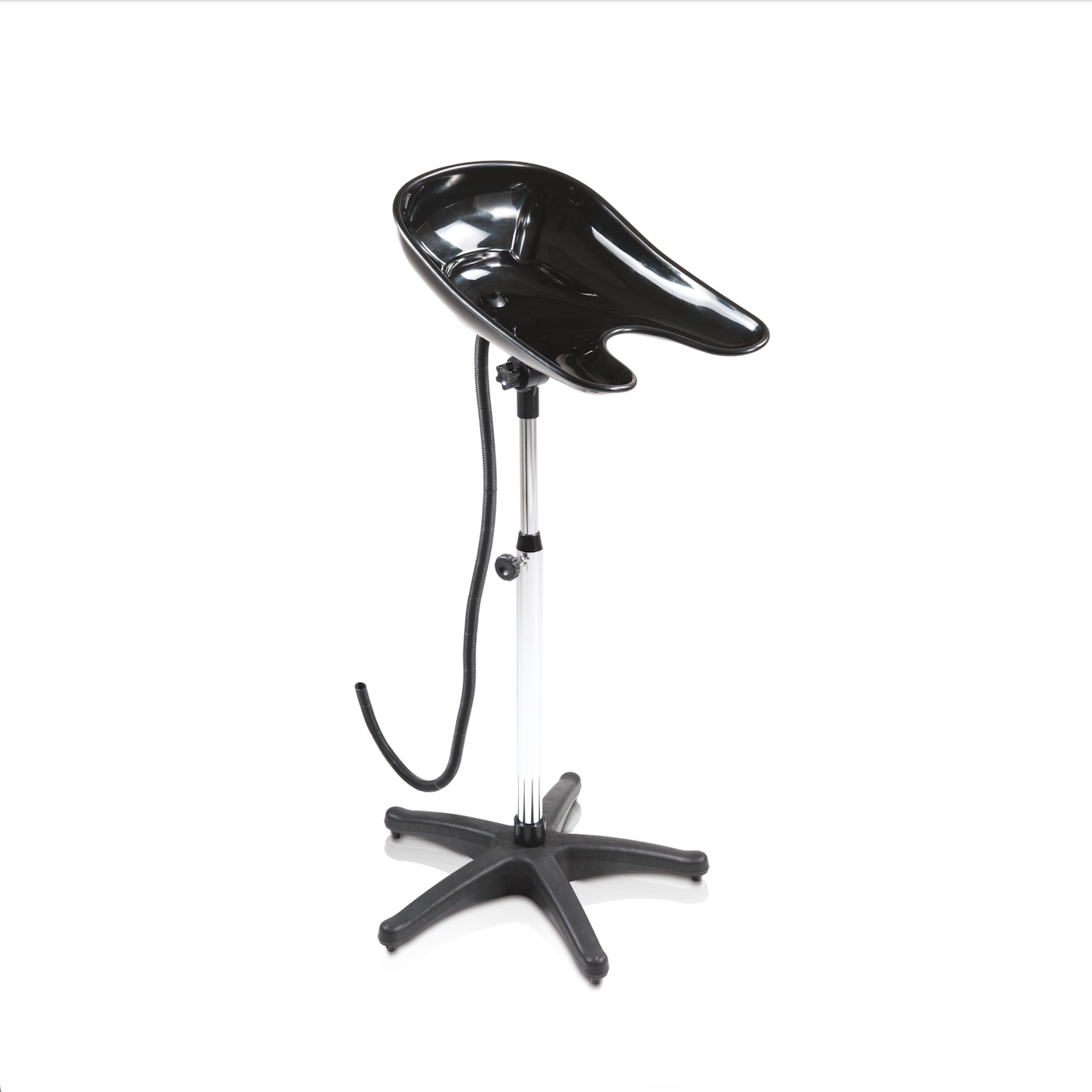 Presenta una vaschetta in plastica resistente di colore nero, con un design ergonomico per il comfort del cliente. La struttura è dotata di un supporto in metallo con altezza regolabile e una base stabile a cinque razze. Include un tubo di scarico flessibile per un drenaggio efficiente dell’acqua, rendendolo pratico e facile da usare.