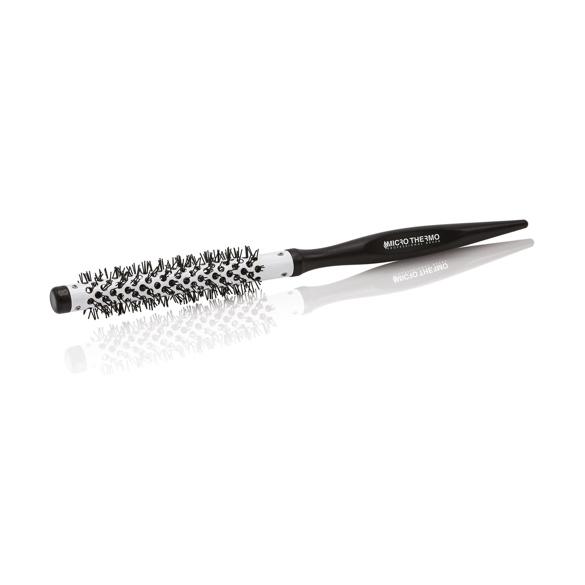 Micro è la spazzola termica perfetta se desideri una dimensione piccola del cilindro. Con setole in nylon, cilindro in ceramica resistente alle alte temperature, e manico in legno.