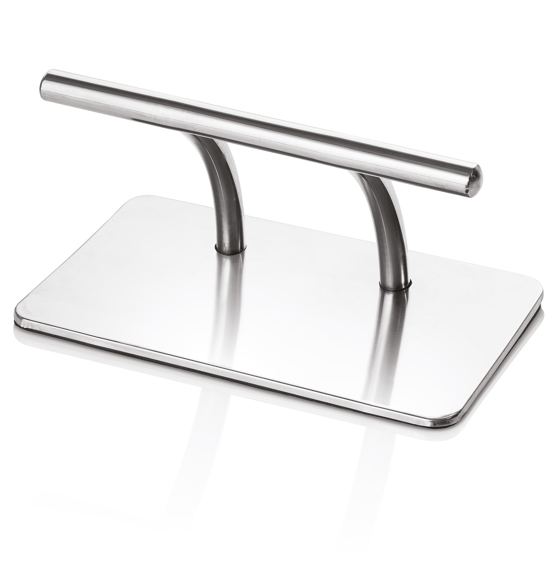 RPUND 2, poggiapiedi in acciaio per saloni da parrucchiere con base rettangolare piatta stabile e tubo arrotondato sostenuto da due supporti centrali per il massimo comfort dei clienti.