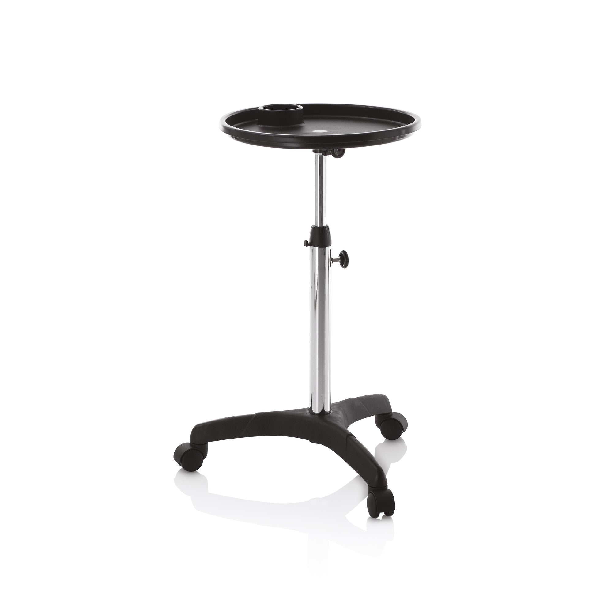 Dotato di un piano circolare, struttura regolabile in altezza e base con ruote per un facile spostamento. Perfetto per un lavoro comodo e ordinato in salone.