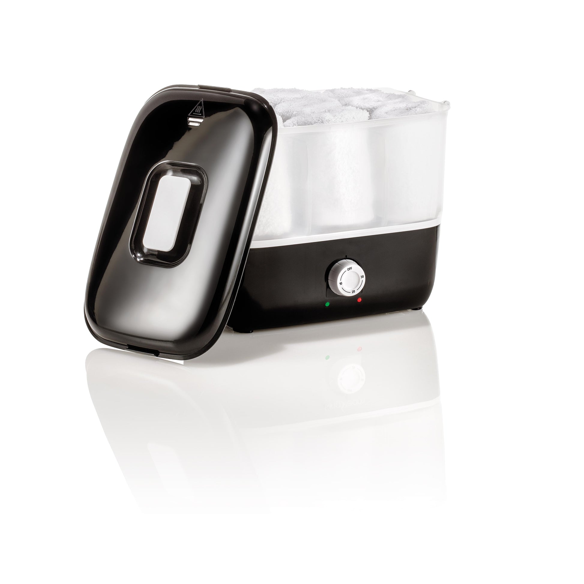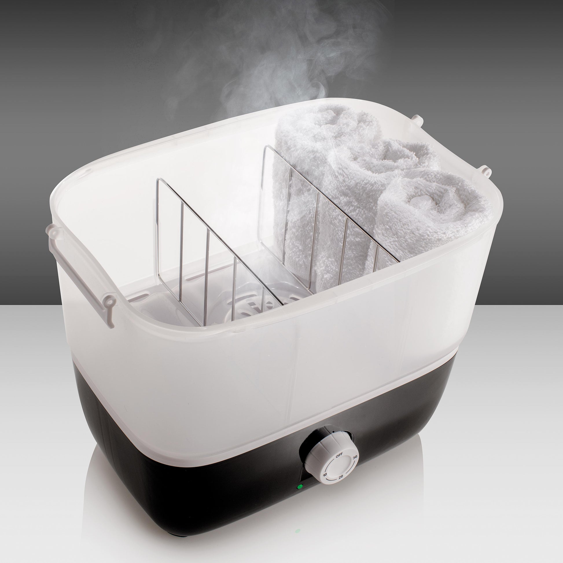 Scaldasalviette a Vapore Compatto con Vassoio Estraibile e Timer - Riscaldamento Rapido per Centri Benessere con 6 Salviette in Spugna Incluse