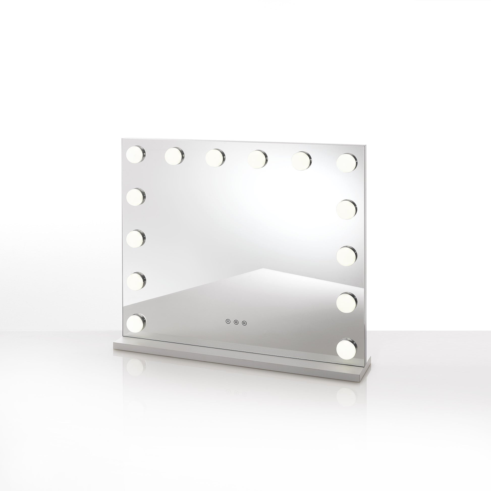 La Specchiera Trucco Make-Up "SCHOOL" è progettata per gli appassionati e professionisti di make-up che cercano precisione e versatilità. Dotata di uno specchio ad alta definizione e illuminazione LED, questa specchiera con struttura in metallo bianco è essenziale per ottenere un trucco perfetto. I tasti tattili permettono di scegliere tra luce calda, naturale o fredda e di regolare la luminosità secondo le tue esigenze.