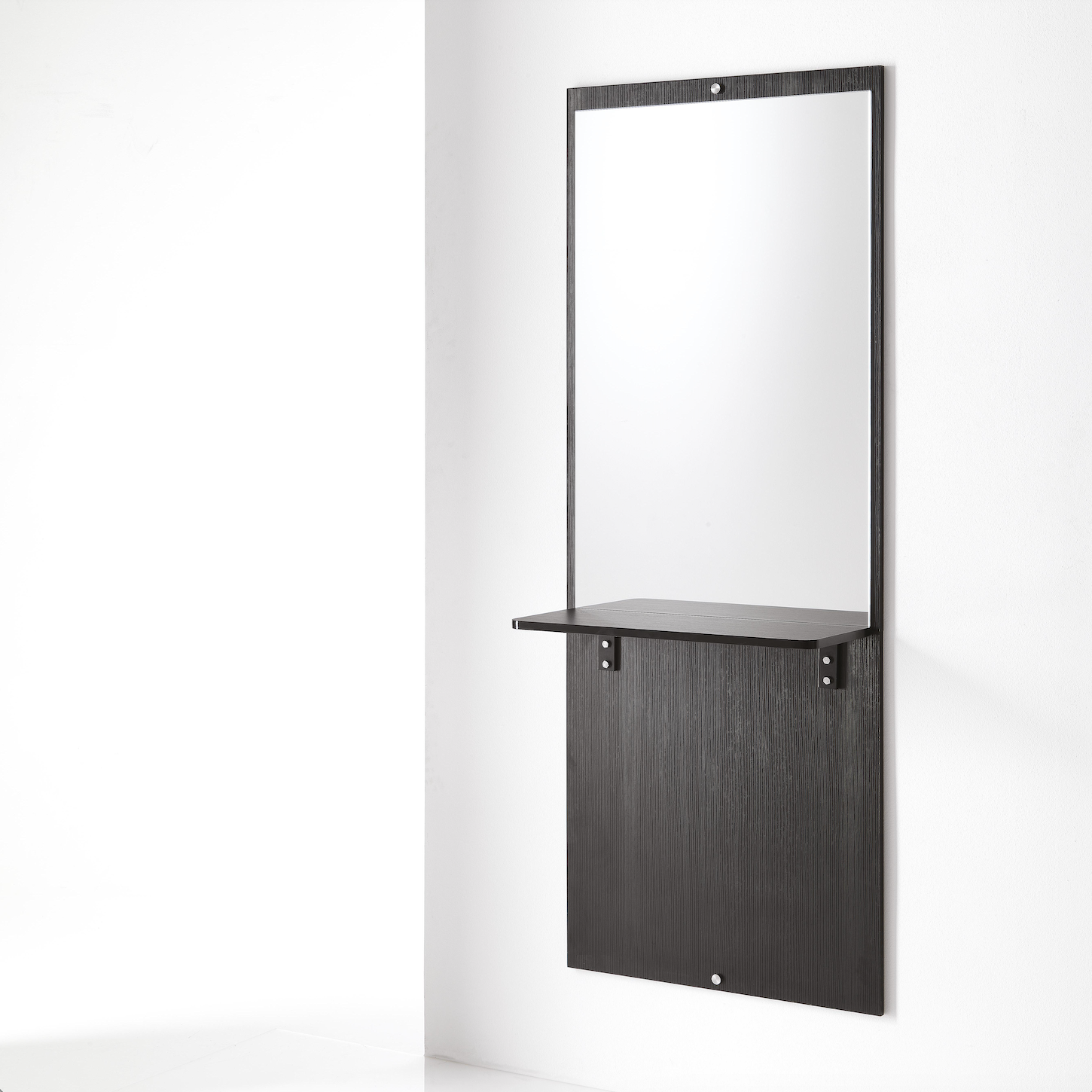Il design essenziale e contemporaneo combina eleganza e funzionalità, offrendo uno specchio spazioso per una visione nitida e precisa. La mensola integrata consente di tenere strumenti e prodotti sempre a portata di mano, assicurando un'area di lavoro organizzata. Perfetta per un ambiente professionale sofisticato e pratico.