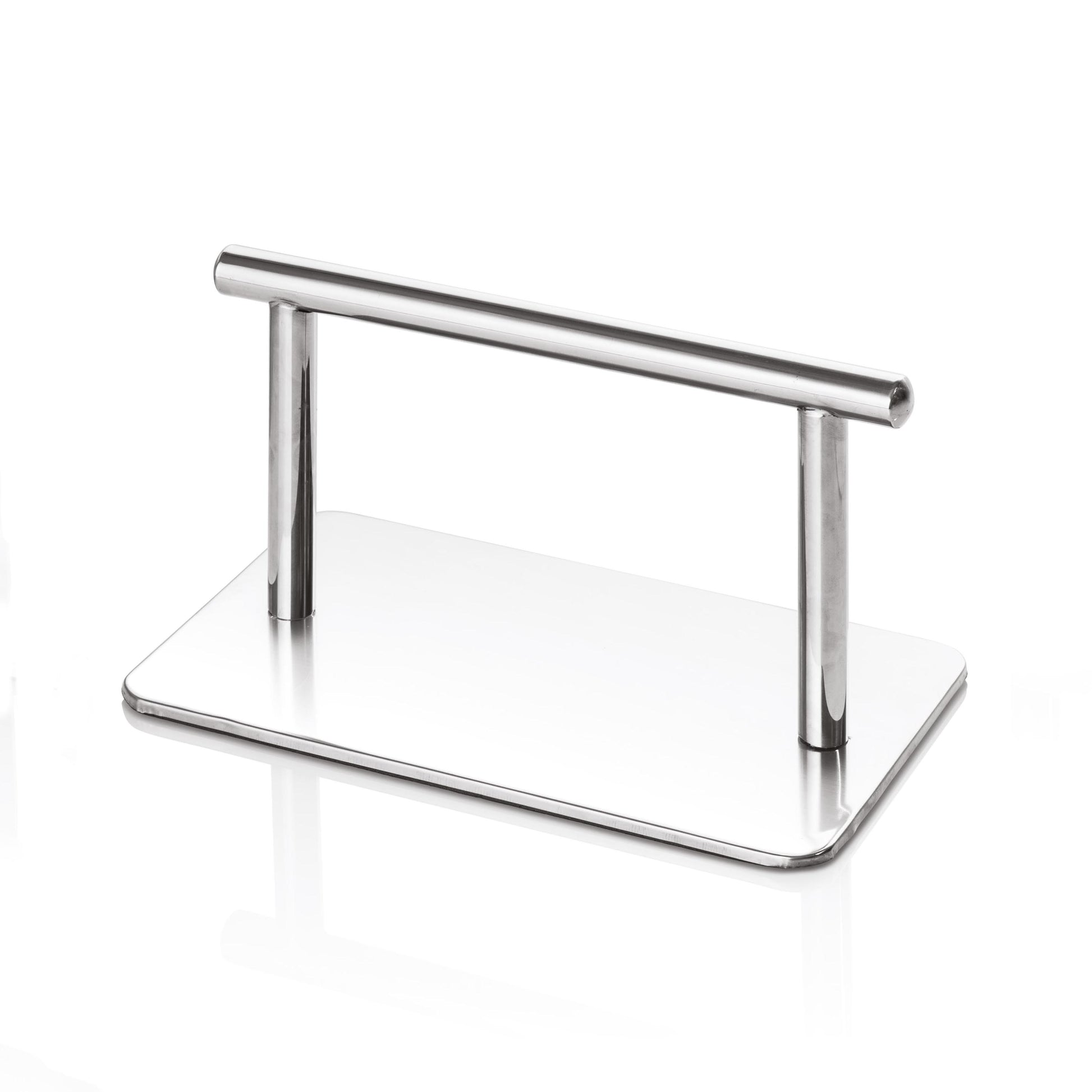 SQUARE, poggiapiedi in acciaio per saloni da parrucchiere con base rettangolare piatta stabile e barra orizzontale per il massimo comfort dei clienti.