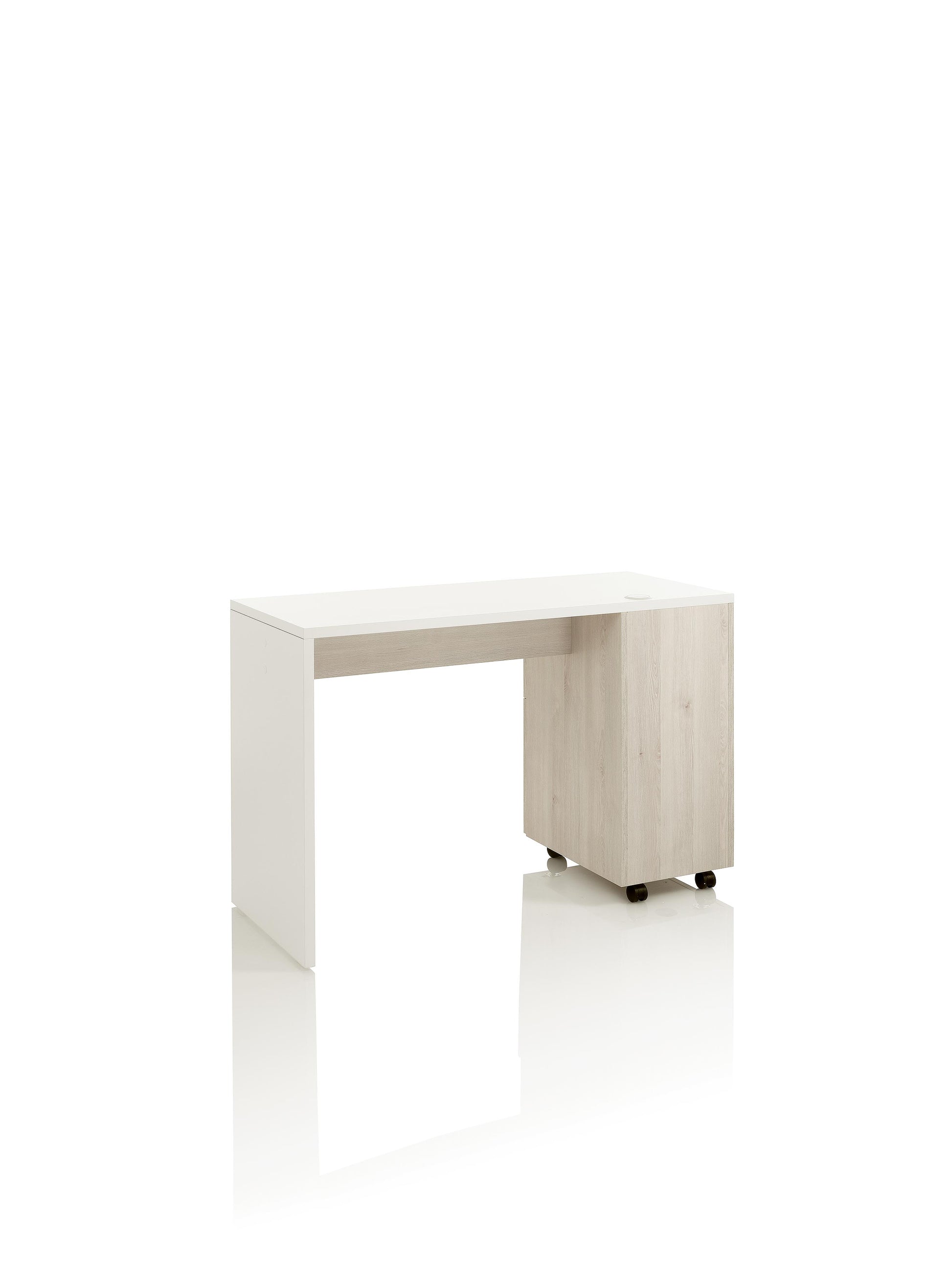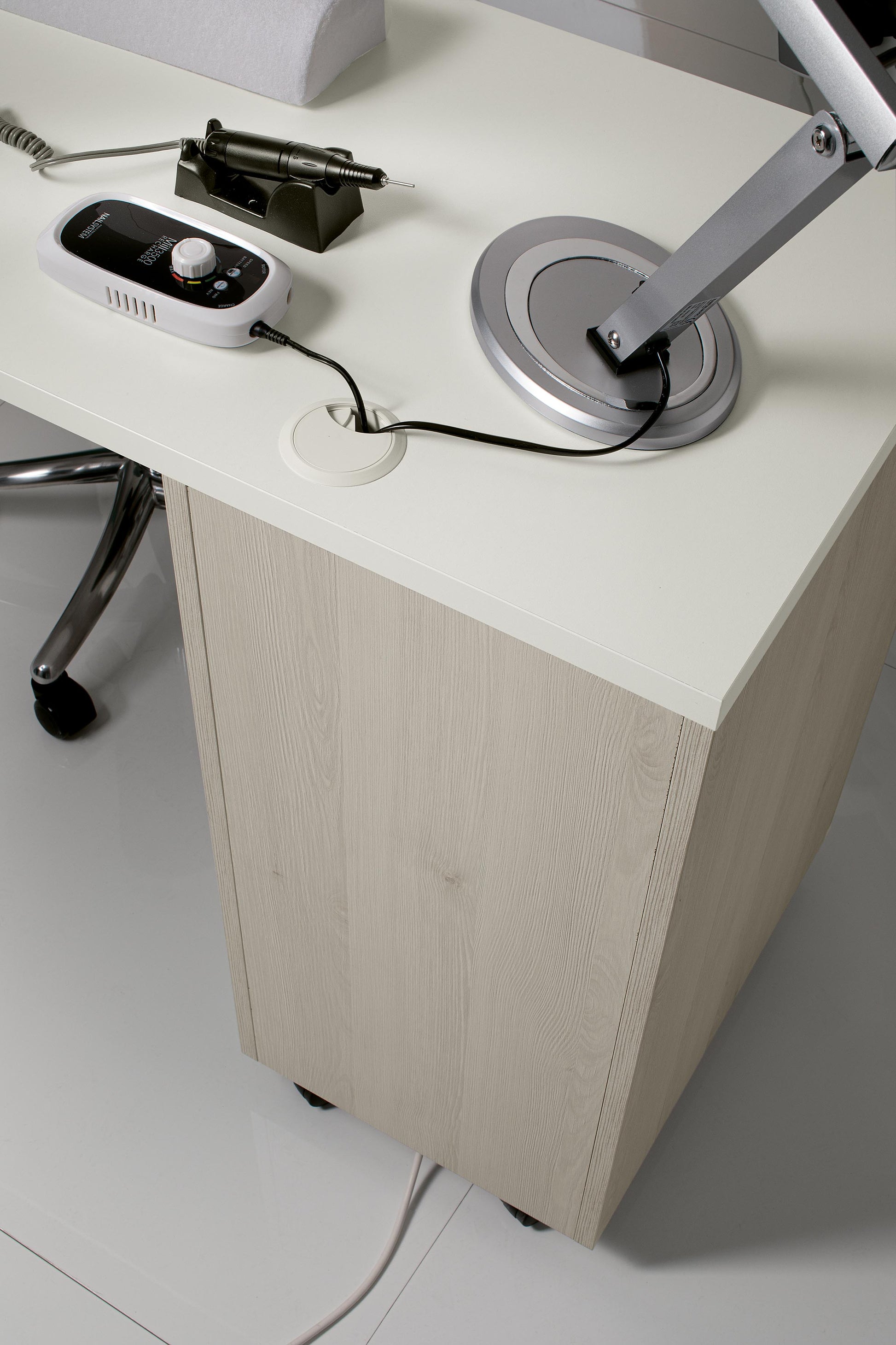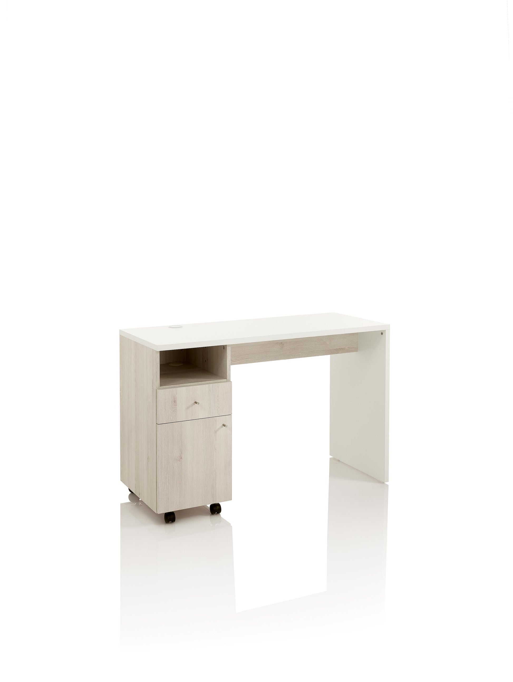 Tavolo Manicure Professionale in Larice Naturale e Laminato Bianco con Ruote
