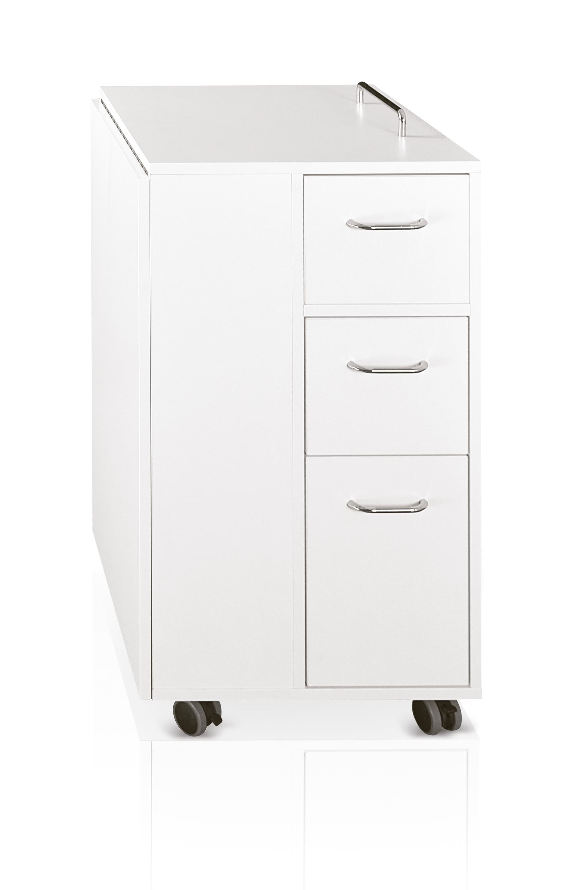 Design Convertibile: Dal mobiletto compatto a un tavolo manicure funzionale in pochi semplici passaggi.