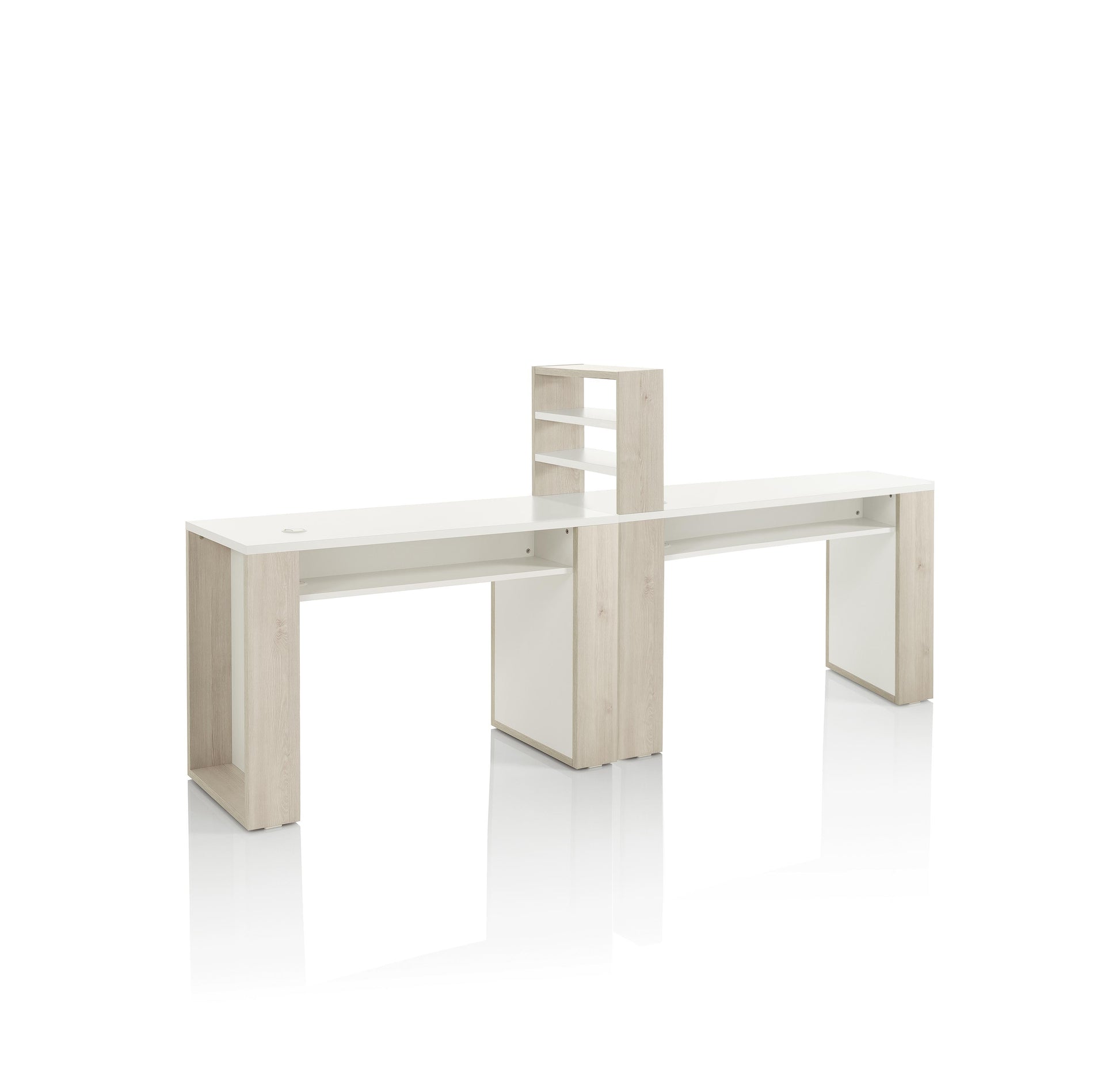 Il nostro Tavolo Nail è progettato per gli specialisti di manicure e ricostruzione unghie che ricercano funzionalità e stile nel loro spazio di lavoro. Disponibile sia in versione singola che doppia, questo tavolo offre una soluzione elegante e pratica, arricchito da fori passacavi e una nicchia per l'esposizione di prodotti.