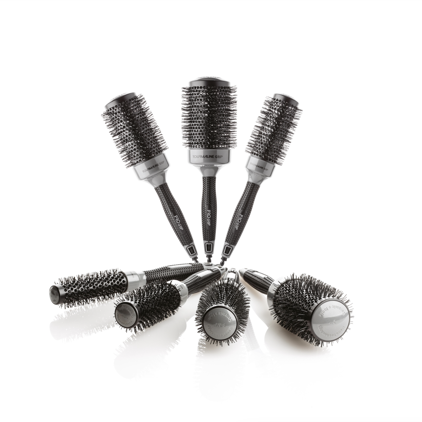 Le spazzole termiche Pro Grip sono ultraleggere. Pratiche e maneggevoli grazie al manico anatomico e altamente antiscivolo, hanno il cilindro in ceramica tourmaline areato. Le setole in nylon permettono una facile igienizzazione. Sono resistenti alle alte temperature, districano e modellano con facilità. Con punta estraibile.